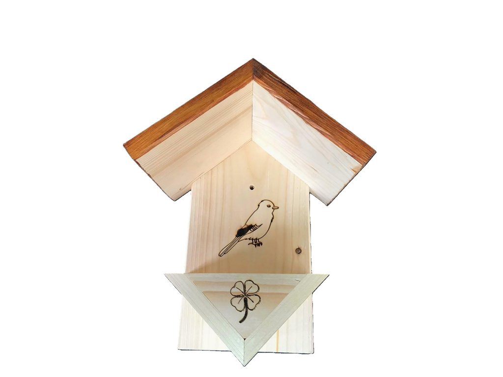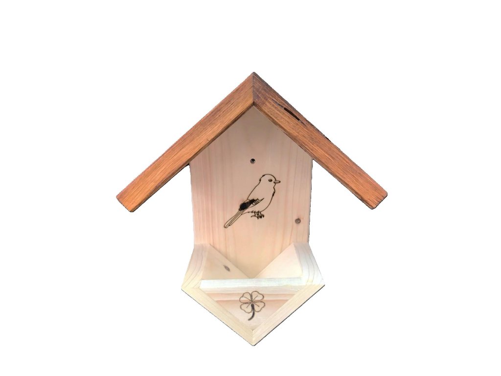 Dřevěné a praktické krmítko pro ptáky na zeď i strom ve tvaru písmene V